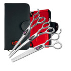 The Love™ models feature ergonomic offset handles for all-day comfort, reducing hand fatigue, and a rustproof satin finish for a sleek, professional look that lasts. This set includes the Love™ 7-inch straight, Love™ 7-inch curved, your choice of either Love™ 22-tooth thinner or 46-tooth thinner, and a stylish KEL5Z 5-shear case.